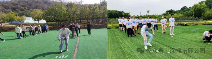 2.按抽签顺序逐队进行,各小组按顺序完成4个闯关:第一关团队跳大绳、第二关团队吹气球、第三关我们是相亲相爱的一家人、第四关团队兔子跳。任务环节出现失误,本环节从头再来。