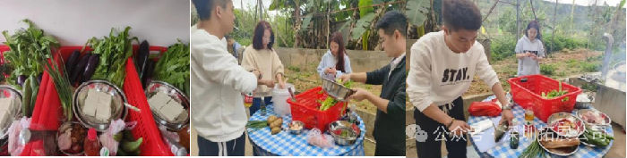 选出炊事班长、大厨、案板、伙夫、小兵等领取食材、调料、厨具等物资。清理、清洗、准备烹饪,分头行动、不做“白吃”的人。