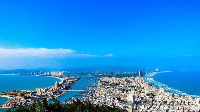 10:30 抵达游览『双月湾观景台』大巴车只能开到山脚,需徒步30分钟抵达山顶,再徒步30分钟下山。(山顶能看到双月湾的全景)平海有许多未开发的海滩。其中较为人知的有双月湾、碧甲海滩和南门海滩。南门海湾呈半月形,长11公里,沙滩宽阔,沙粒细,呈白色,干时松,湿时坚。海底平缓,海水清澈,海浪巨大,是天然的海宾浴场。双月湾位于惠东平海镇。双月湾共分两湾,左湾水平如镜,右湾波涛汹涌。沙滩连绵20公里,雄奇壮观,几乎见不到人为开发的痕迹。沙滩宽约200米。海水清澈见底,海底平坦舒缓,离岸200米,人们还可在海中站立,堪称一绝。洁白的弧形沙滩,沙质幼细,晶莹洁净。摩托车、小汽车在沙滩上行驶尤如海上行车,乐趣无穷