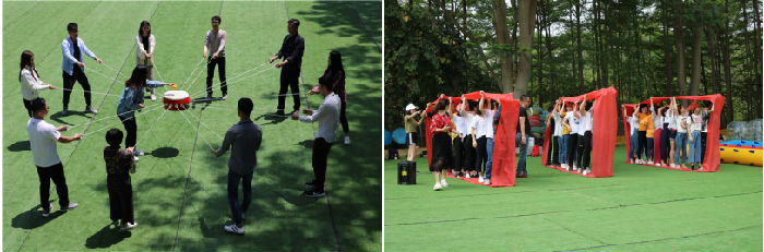 项目内容:团队闯关项目,要求团队一共闯4 关,分别是团队跳绳、激情节拍、团队兔子跳、团队运气球 项目目的: