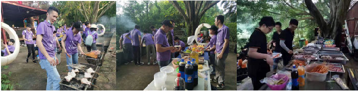 【烧烤】:分配烧烤食品,烧烤炉。教会大家一些简单的烧烤方法,大家自由品尝着自己烹饪美味大餐。
