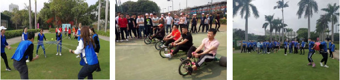 草地毛毛虫;高尔夫推杆接力;飘移卡丁车;珠行万里;杯子舞;极速60秒;旱地划船;多米诺骨牌;扯龙尾;达芬奇密码;拔河;两人三足;袋鼠跳;筷子兄弟;旅行家;大脚板;指压板;团队圣塔等。