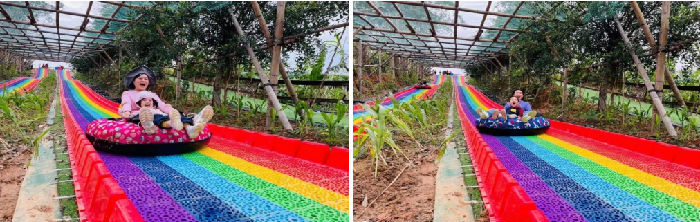 长长的彩虹滑道,像极了儿时游乐场里的滑滑梯,这一刻,没有作业的压力,没有成长的烦恼,只有肆意飞扬的青春和快乐…