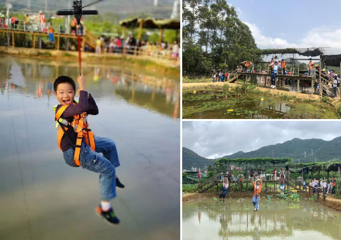 你可以在清澈的水潭里体验水上溜索,将飞身划过水面,激起的水花带来清凉的享受和速度的刺激,体验水上飞人的乐趣。