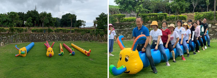 趣味运动会:毛毛虫、无敌风火轮,是一项将传统的体育比赛和引起人兴趣的趣味活动融合在一起的一项新兴运动。是对体能与智力以及团队合作的挑战。
